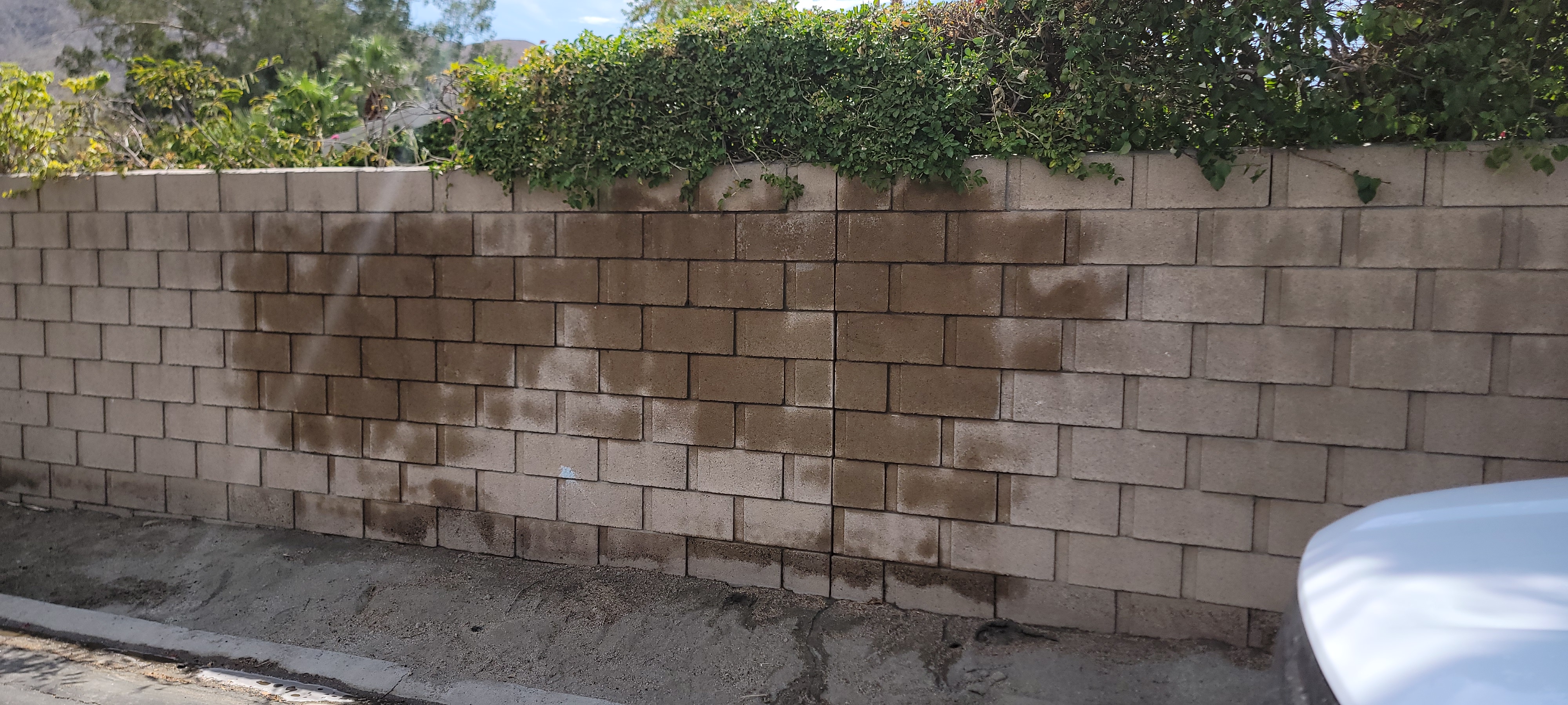 For this project we got an emergency call on a Saturday morning. Customer needed our Graffiti removal service from a brick wall in Rancho Mirage. Job needed to be performed ASAP, we gave our price to remove it, customer agreed and we started our Graffiti removal process, the job itself was quite large, about 50 yards or graffiti down the brick wall, all lettering.