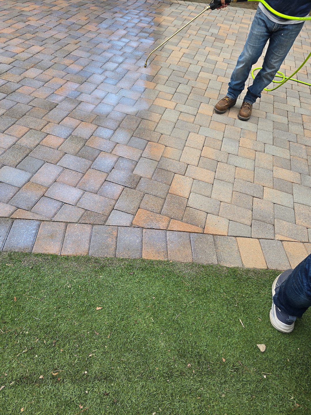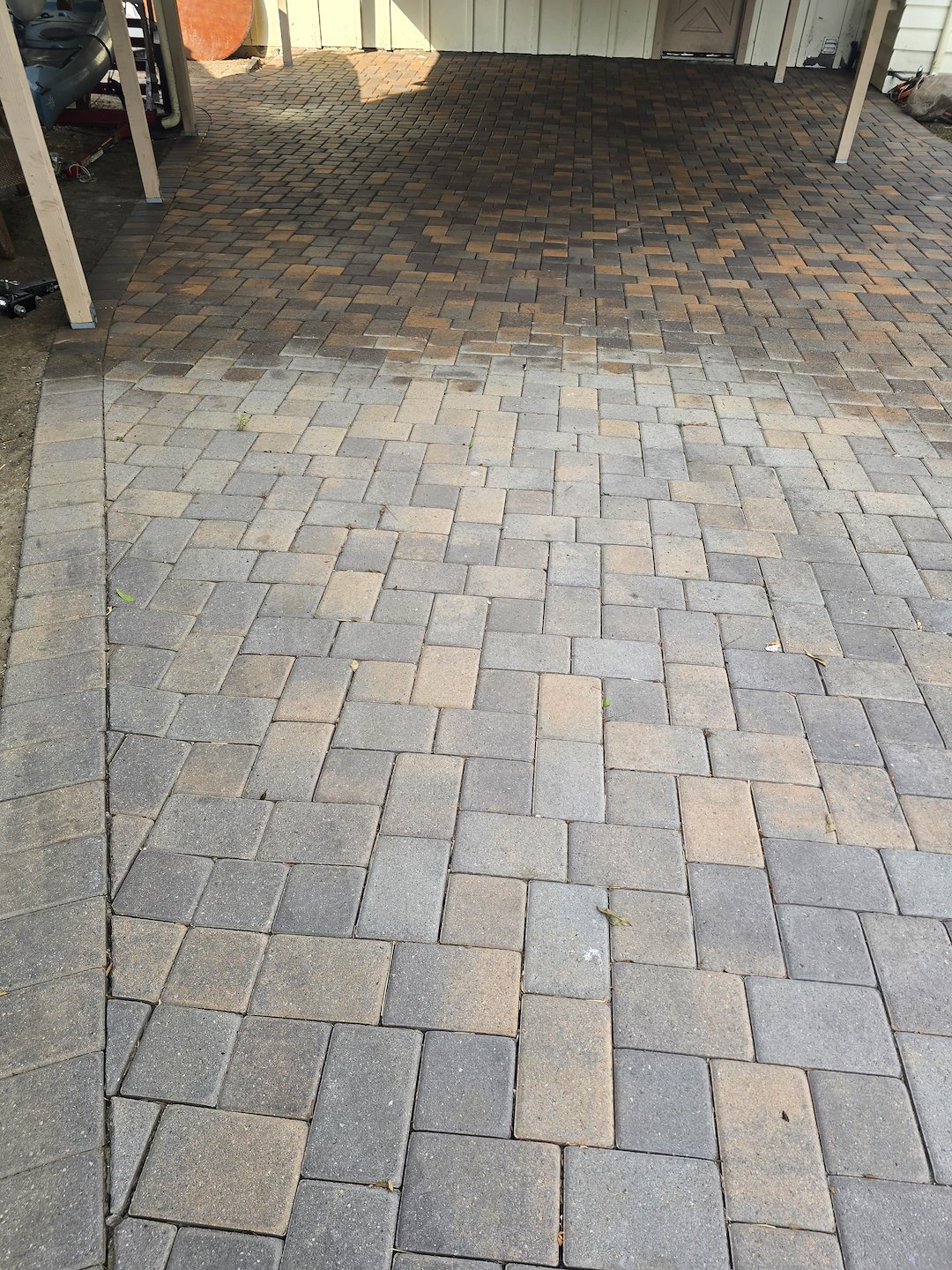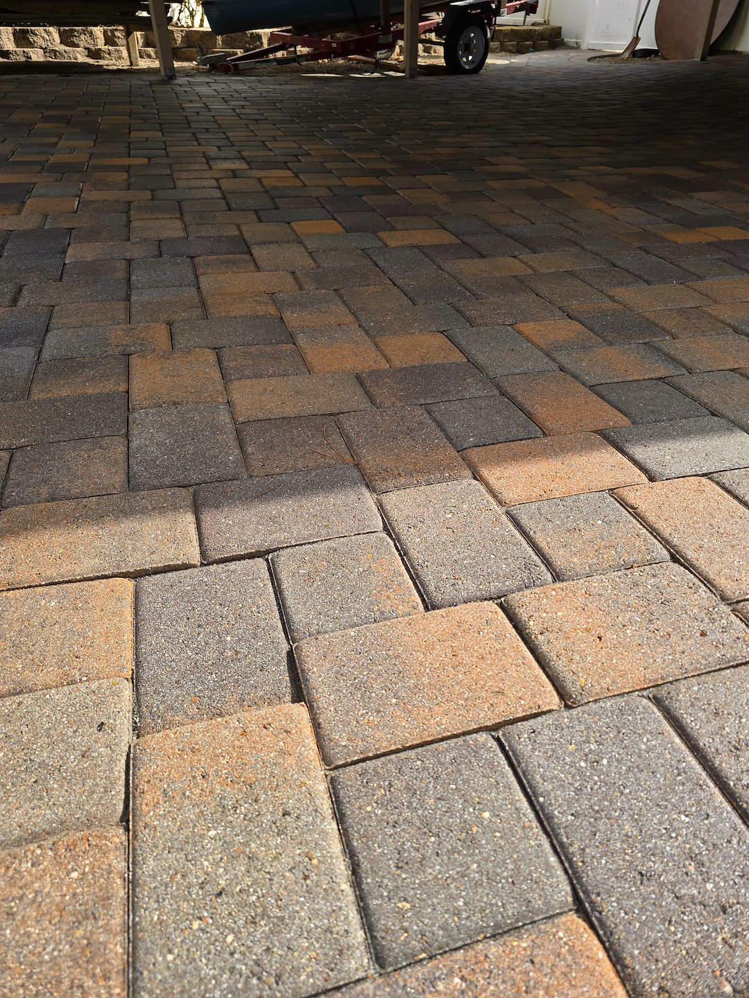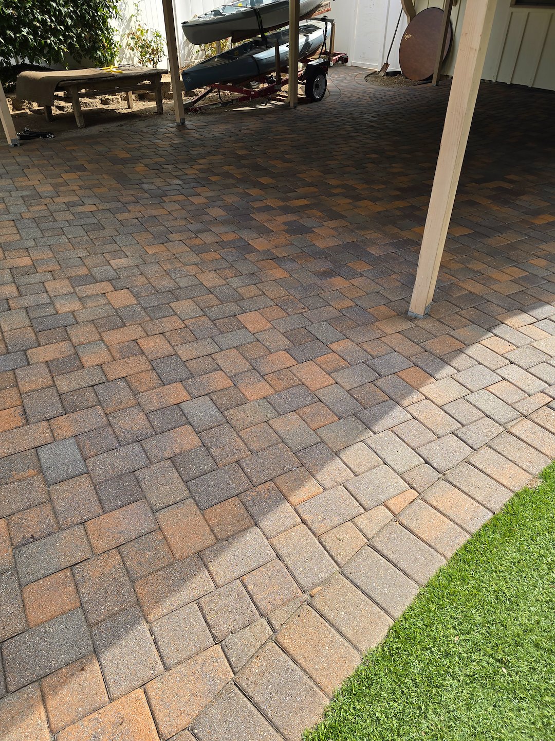Paver sanding and sealing. We had a consultation with them to get a feel for what their goals were. They wanted a "wet look" with color enhancement. This job was done in Palm Desert, Ca. We cleaned, sanded and sealed these pavers with out 3 step method. As you can see from the picture the difference is night and day. Customer was super happy with results